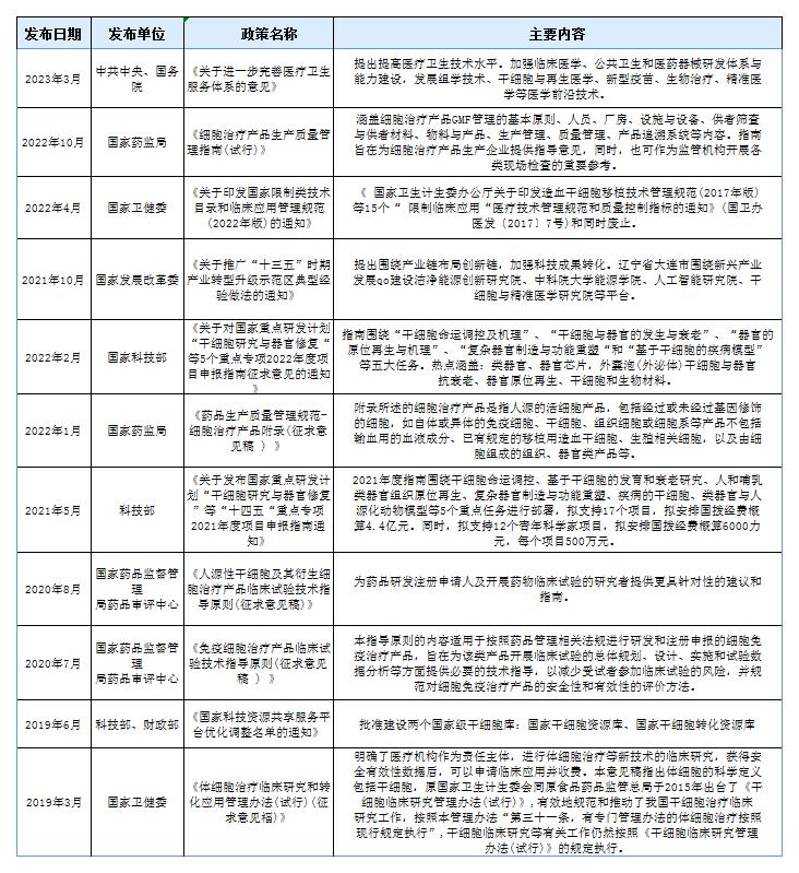 2023年3月,中共中央、国务院联合发布了《关于进一步完善医疗卫生服务体系的意见》,明确提出要提高医疗卫生技术水平,并强调了发展组学技术、干细胞与再生医学、新型疫苗、生物治疗、精准医学等医学前沿技术的必要性。