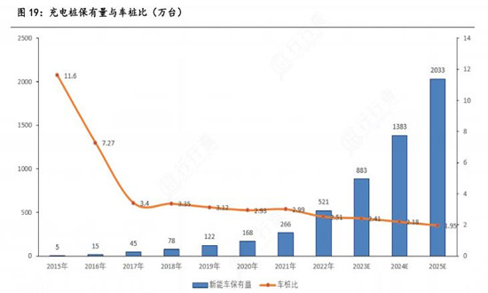 在新能源车销量稳定增长、政策支持、与投资商积极参与的背景下,预计2024年-2025年充电桩仍有望保持较快增长,车桩比将延续趋势性下降态势,2024年、2025年分别有望降至2.18、1.95。