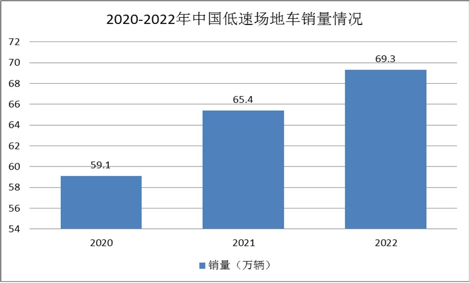 据中研普华产业研究院统计,2022年,国内低速场地车产销量约为69.3万辆。近几年国内低速场地车的销售量呈较高的增长态势。
