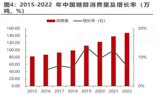 随着对功能性糖醇功能的不断研究和开发,功能性糖醇产品在各领域的应用逐渐拓宽,应用范围不断拓展。除了传统的食品、饮料、日化领域之外,功能性糖醇也开始应用于化工、蓄电池等行业中,用于合成树脂、表面活性剂、化工醇、泡沫聚酯、蓄电池极板的制造,这也为功能性糖醇行业带来了新的发展机遇。