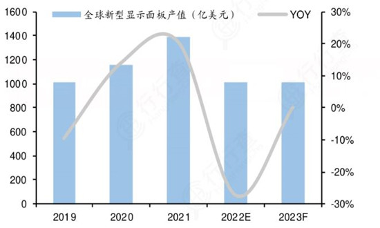 图表:全球新型显示面板产值