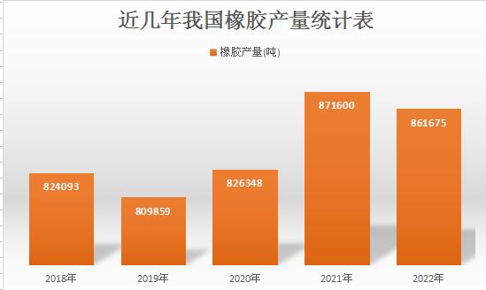 从我国橡胶行业生产现状来看,2022年我国橡胶产量为908.9万吨,其中天然橡胶产量为85.6万吨,合成橡胶产量为823.3万吨。需求来看,受下游市场需求不振的影响,2022年我国橡胶总需求量为1570.39万吨,其中天然橡胶需求量为346.81万吨,合成橡胶需求量为1223.58万吨。