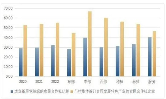 合作社在促进农村集体经济发展、农民素质提升、农村社会治理等方面发挥着越来越重要的作用。500强合作社积极推动农村集体经济发展,与村集体签订合同发展特色产业的合作社比重由2020年的53.00%增至2022年55.20%。500强合作社注重农民素质提升,广泛开展农民培训活动,2022年社均每年组织培训8.31次,近两年年均增长率达到15.12%。