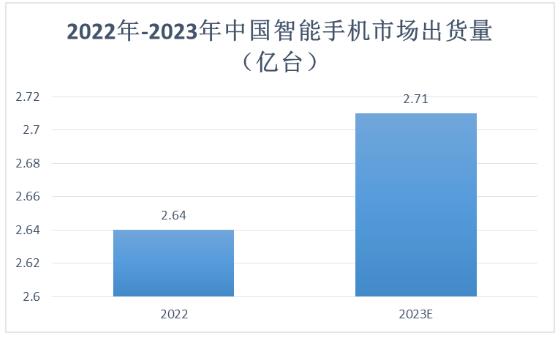 图表:2022年-2023年中国智能手机市场出货量(亿台)