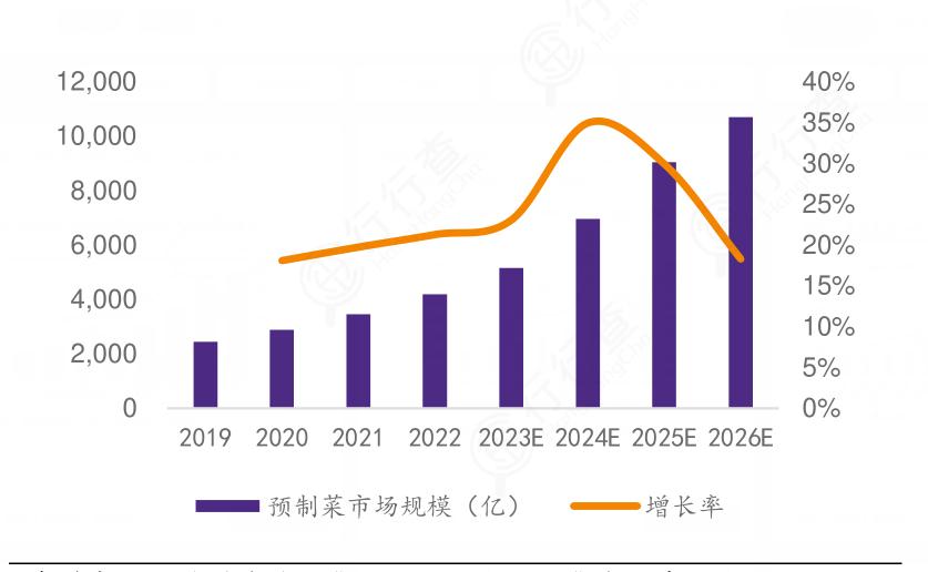 随着餐饮行业的竞争加剧,许多餐饮企业也开始采用预制菜来提高上菜速度、减少后厨用工人数。预制菜作为新兴业态,有着广阔的市场前景和发展空间。据预测,到2026年我国预制菜市场规模将达到万亿元级别。