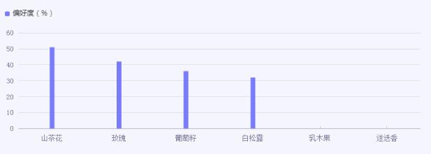 而在精油的品质与选材上,消费者们也有着明晰的考量,更青睐于含有天然植物成分的产品。而随着本国品牌在相关科研能力上的不断加强,消费者对于国货品牌的消费热情持续提高,国产产品也更加受到消费者青睐。全拓数据显示,在现如今精油的主要消费群体精油天然植物成分的偏好中,山茶花以51%的偏好度遥遥领先位列榜首,其次是玫瑰(42%)、葡萄籽(36%)、白松露(32%)等,而近些年开始流行的乳木果、迷迭香等均在列。