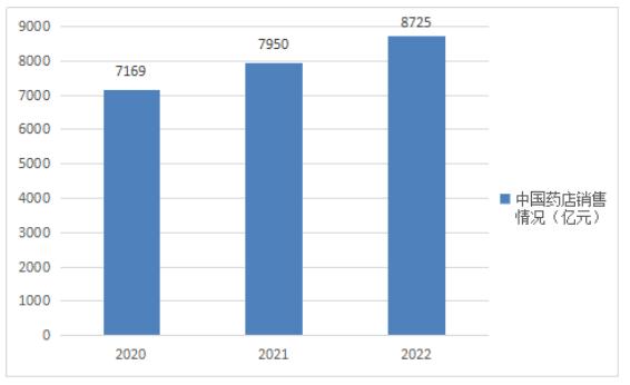 根据相关数据,按终端平均零售价计算,2022年中国实体药店和网上药店(含药品和非药品)销售规模达8725亿元,同比增长9.7%。其中,实体药店占比为70.1%,网上药店突破2600亿元。从实体药店各品类结构来看,2022年药品销售额占比为76.7%,较2021年下滑0.4个百分点。