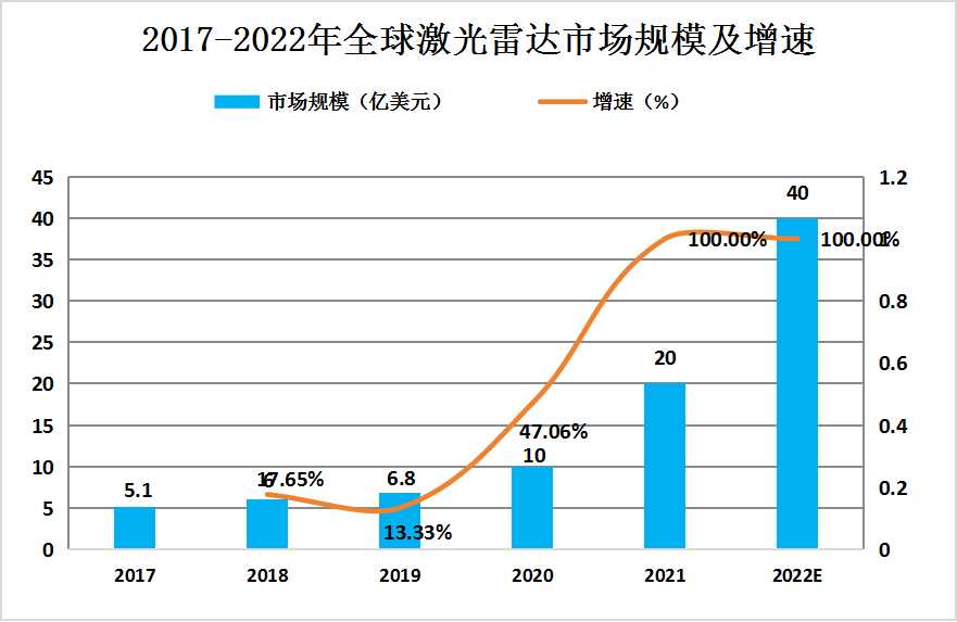 据中研产业研究院《2024-2029年激光雷达产业现状及未来发展趋势分析报告》分析,2021年全球激光雷达市场规模已达到20亿美元,同比增长了惊人的100%。而据预测,到2022年,全球激光雷达市场规模有望达到40亿美元。这一迅猛的增长趋势显示出激光雷达在智能化时代的巨大价值和广阔前景。