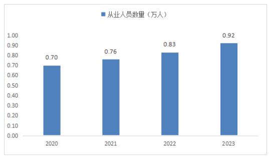 电子认证服务行业在近年来得到了迅速的发展,我国目前拥有许可资质的电子认证服务(CA)机构已增至近60余家,电子认证服务在政务、金融、医疗、教育等信息化程度较高的领域,早已获得广泛应用。根据市场调研数据分析,2020-2022年中国电子认证行业人员规模呈现逐年增长趋势,2022年人员规模为0.92万人。