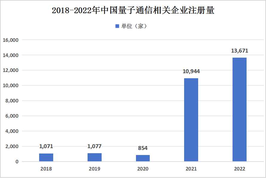 进入2022年,尽管全球疫情依然严峻,但中国的量子通信行业依然保持了强劲的发展势头。据统计,2022年我国新增量子通信相关企业13671家,同比增长了24.9%。这一增长趋势不仅表明量子通信在国内市场的持续热度,也预示着量子科技将在未来继续发挥重要作用,为经济社会发展注入新的动力。