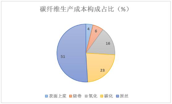 原丝是生产高品质碳纤维的关键,其成本约占碳纤维生产成本的51%。