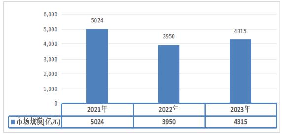 图表:2021-2023年中国证券行业市场规模