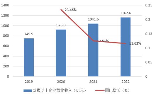 图表:2019-2022年电动自行车规模以上企业营业收入
