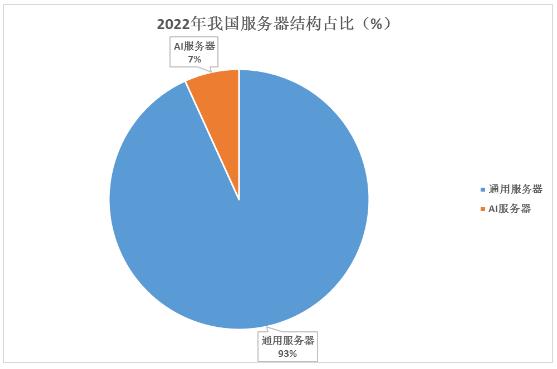 从服务器结构来看,2022年,我国通用服务器占服务器总量比重为93.2%,而AI服务器仅占服务器总量的6.8%。这表明在服务器市场中,通用服务器仍然是主流,但AI服务器作为新兴市场也具有一定的份额。