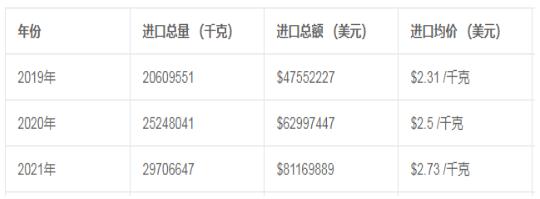 图表:2019-2021年中国中硼硅玻璃进口数量