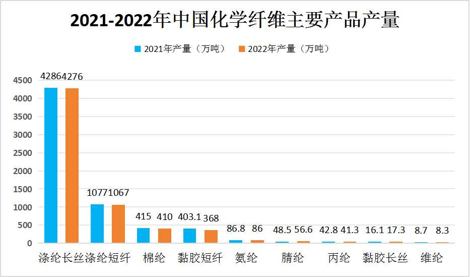 图表:2021-2022年中国化学纤维主要产品产量