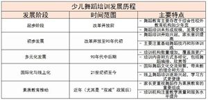 少儿舞蹈培训发展历程在改革开放之前,我国的舞蹈教育主要存在于综合性的校外教育机构中,如少年宫,这些机构为少年儿...