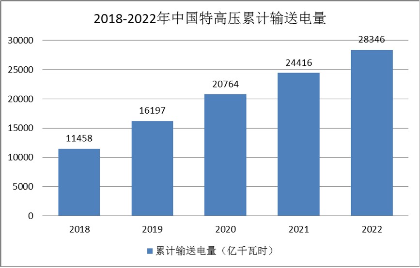 图表:2018-2022年中国特高压累计输送电量