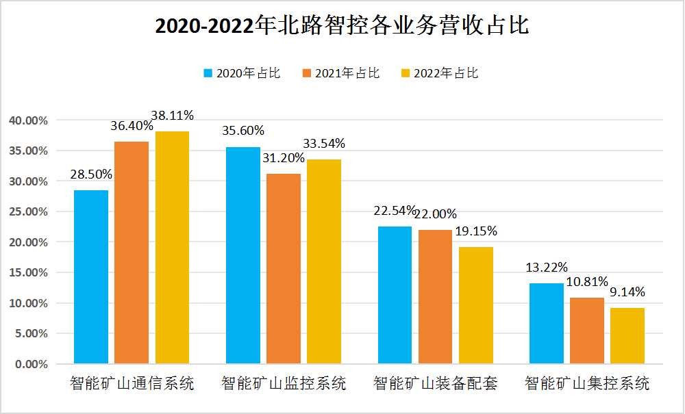 图表:2020-2022年北路智控各业务营收占比