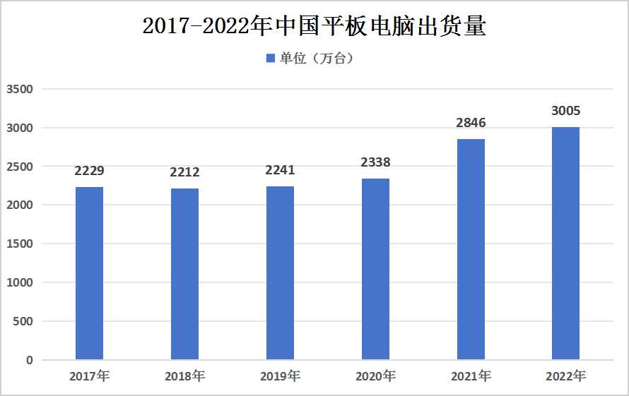 具体来看,2022年平板电脑的整体出货量达到了约3005万台,同比增长了5.59%。这一数据的增长,不仅彰显了平板电脑市场的活力,也预示着平板电脑在未来将有更加广阔的发展空间。