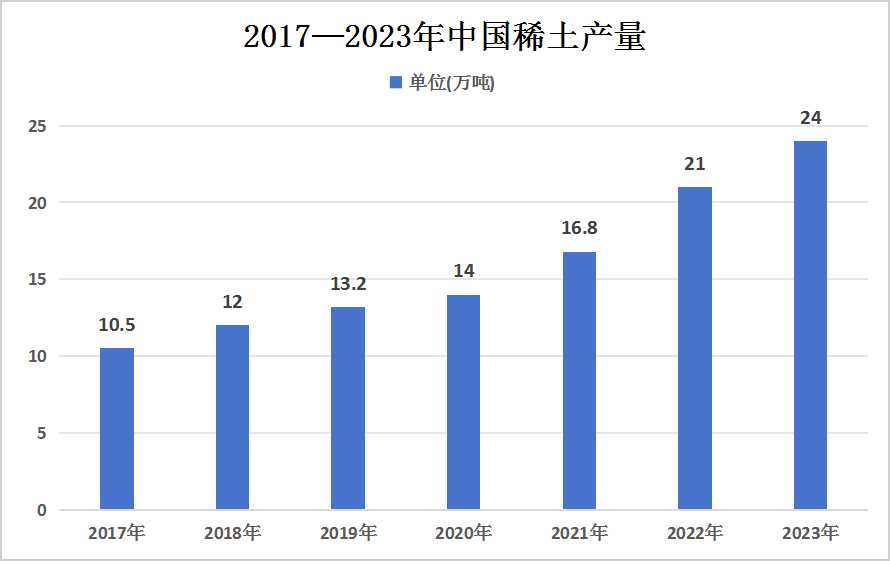 近年来,随着中国对稀土资源的重视和合理开发利用,稀土产量逐年增长。2021年,中国稀土产量达到16.8万吨,同比增长了20%。展望未来,随着技术的不断进步和市场需求的增长,预计2023年中国的稀土产量将达到24万吨,继续巩固其在全球稀土市场的领导地位。