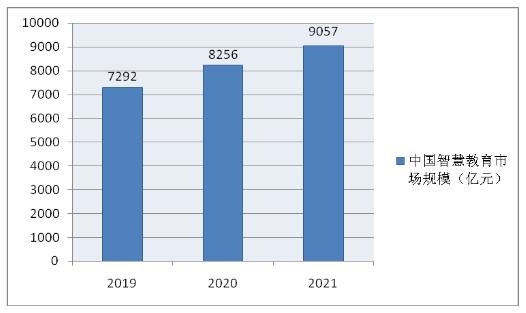 图表:2019-2021年中国智慧教育行业市场规模(单位:亿元)