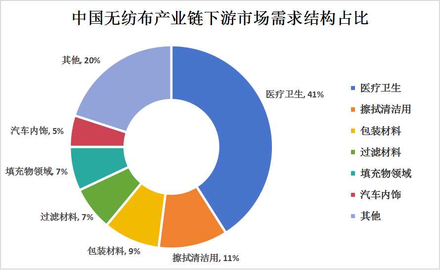 图表:中国无纺布产业链下游市场需求结构占比