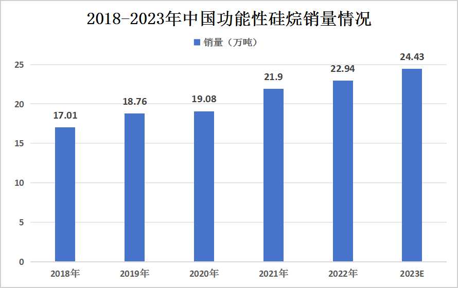 图表:2018-2023年中国功能性硅烷销量情况