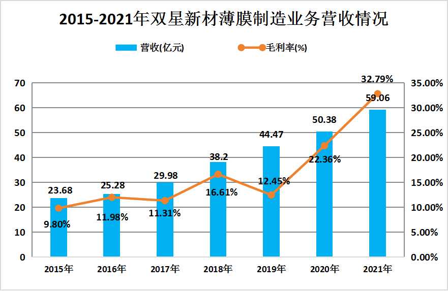 图表:2015-2021年双星新材薄膜制造业务营收情况