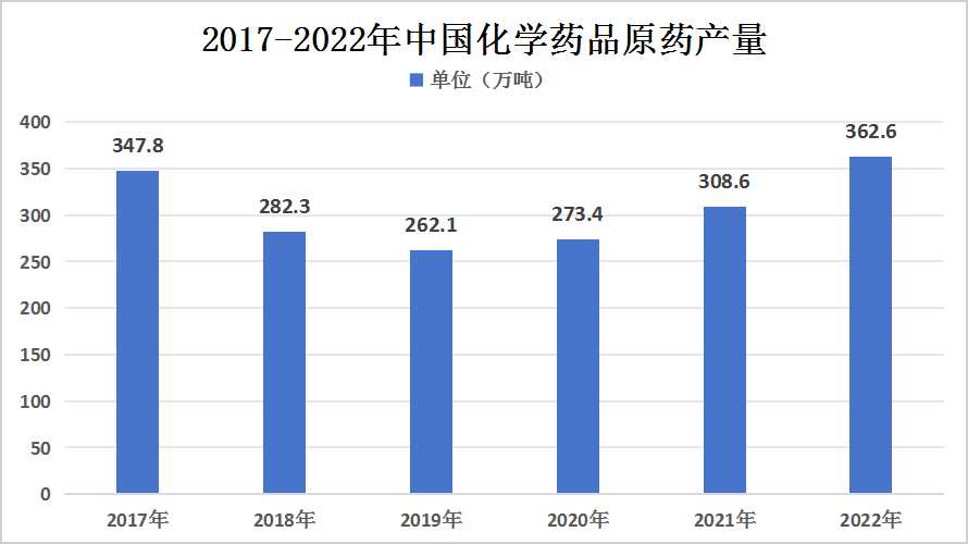 图表:2017-2022年中国化学药品原药产量及增速