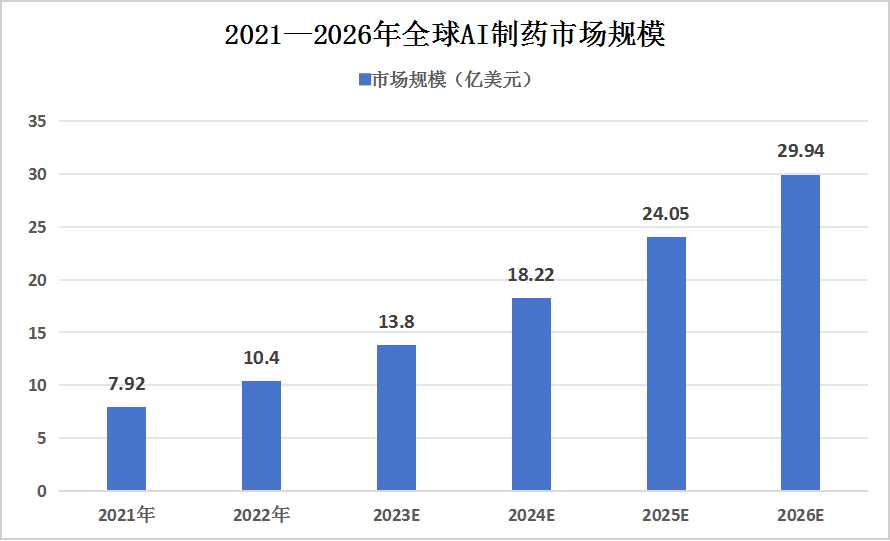 图表:2021—2026年全球AI制药市场规模