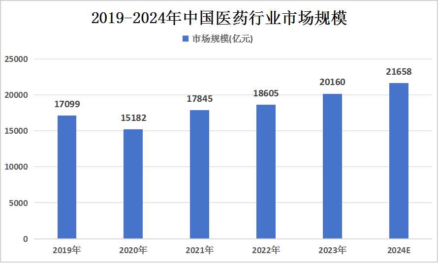 图表:2019-2024年中国医药行业市场规模