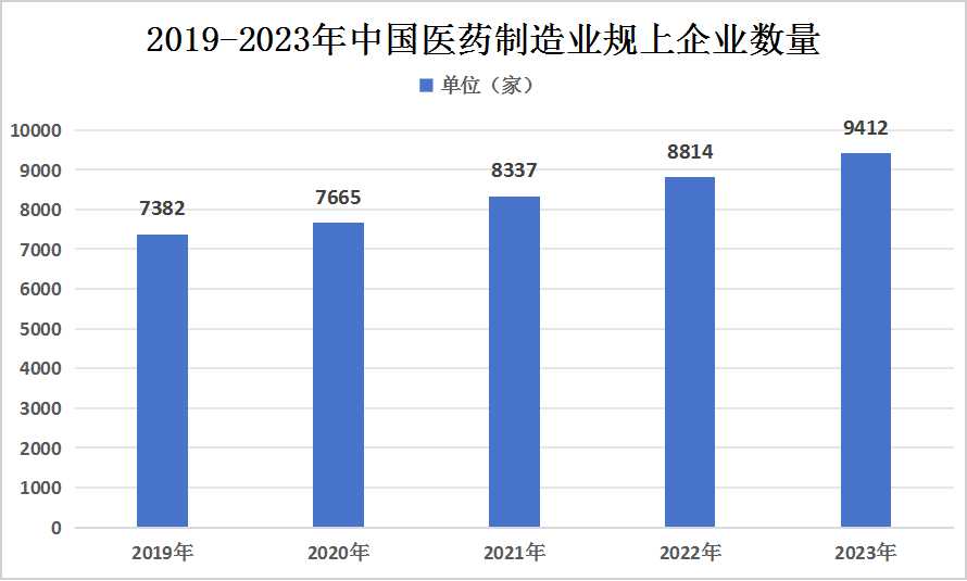报告数据显示,2023年我国医药制造业规上企业数量已达到9412家,相较于上一年度增长了6.78%。这一显著增长不仅体现了我国医药产业的强大活力和巨大潜力,也彰显了国内医药企业不断壮大和完善的良好态势。