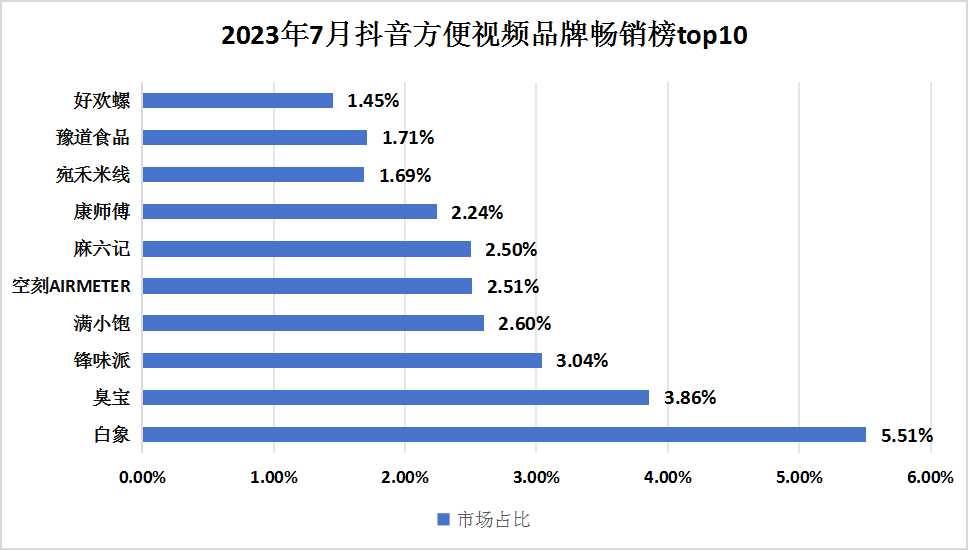 图表:2023年7月抖音方便视频品牌畅销榜top10