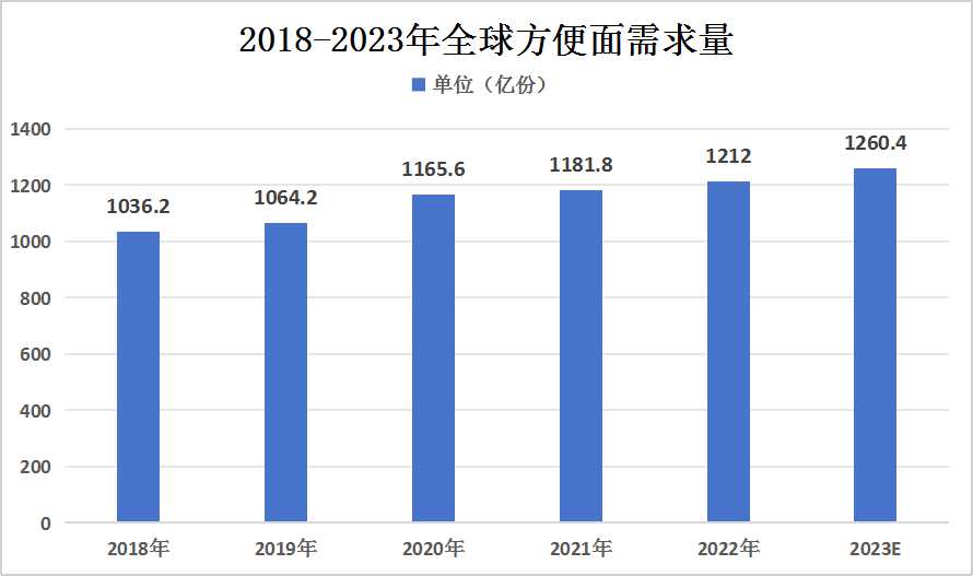 随着全球消费者对于便捷、美味食品的需求持续增长,以及方便面企业在产品创新和质量提升方面的不断努力,2023年全球方便面总需求量有望进一步增长至1260.4亿份。