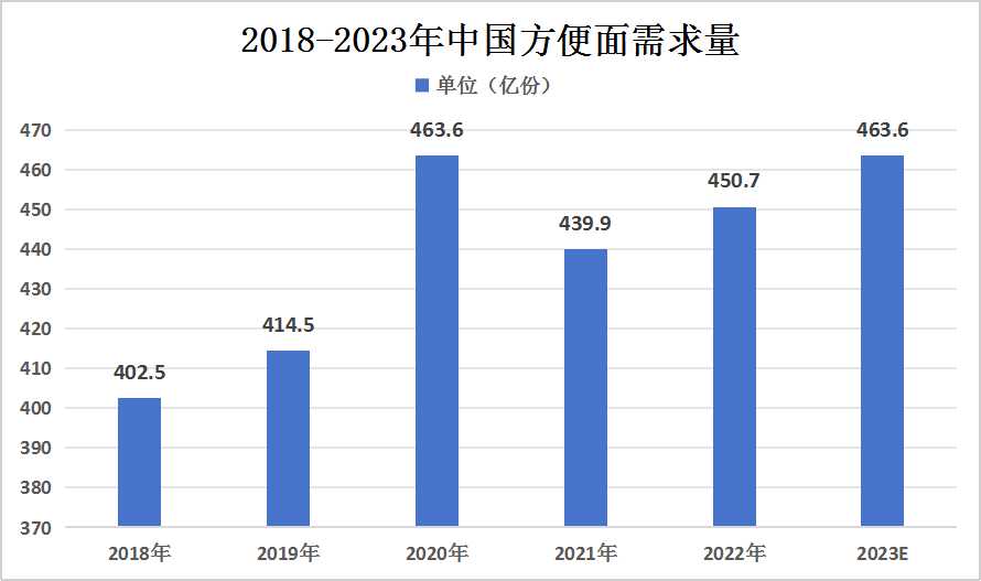 随着消费者对于方便、快捷食品的需求不断增加,以及方便面企业在产品创新和品质提升方面的持续努力,2023年中国(包括香港地区)的方便面总需求量有望进一步增长至463.6亿份。