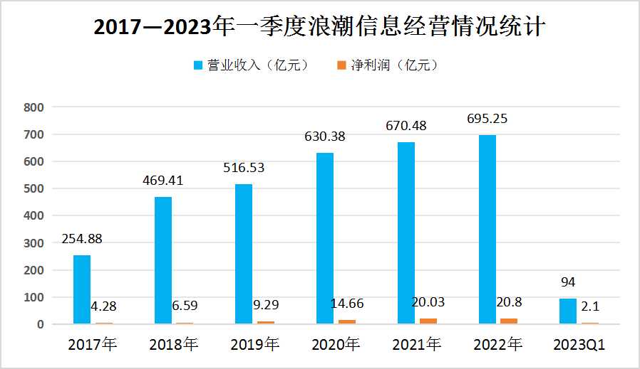 图表:2017—2023年一季度浪潮信息经营情况统计