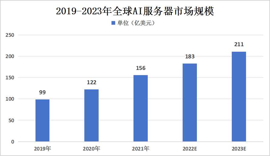 图表:2019-2023年全球AI服务器市场规模