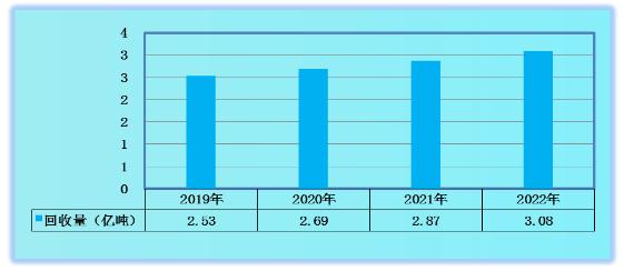 图表:2019-2022年中国废旧金属回收总量