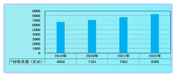 图表:2019-2022年中国废旧金属回收总值