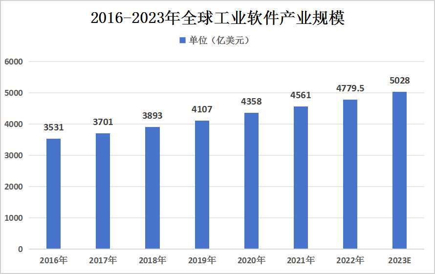 预计到了2023年,全球工业软件产业规模将有望突破5000亿美元大关。这一预测不仅彰显了工业软件行业的强劲发展势头,也预示着其在未来全球经济中的重要地位。