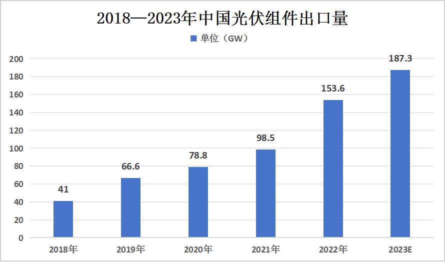图表:2018—2023年中国光伏组件出口量