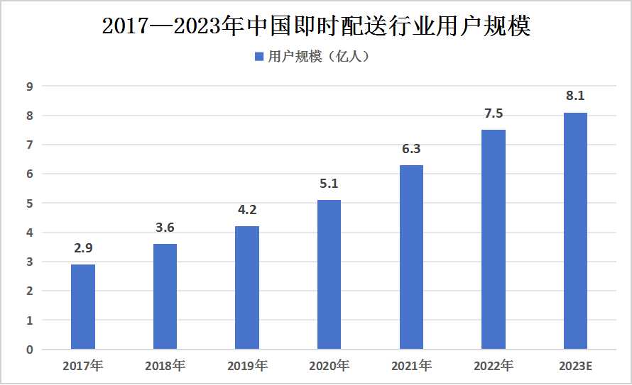 图表:2017—2023年中国即时配送行业用户规模