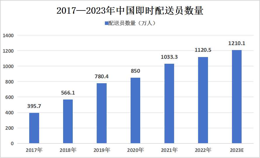 图表:2017—2023年中国即时配送员数量