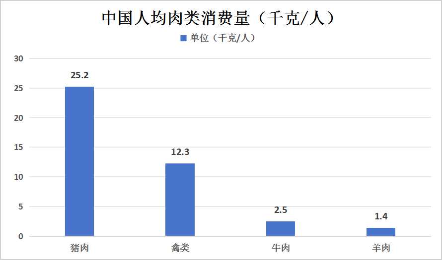 从更宏观的角度来看,我国作为全球最大的肉类食品消费大国,人均肉类食品消费量在过去的几十年里实现了飞速的增长。从1978年的每年9kg,到2022年的每年70kg,这一数字的巨大变化不仅见证了我国居民生活水平的提高,也预示着未来肉类消费市场的巨大潜力。