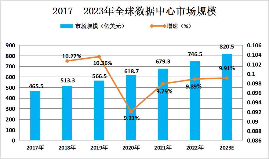 图表:2017—2023年全球数据中心市场规模