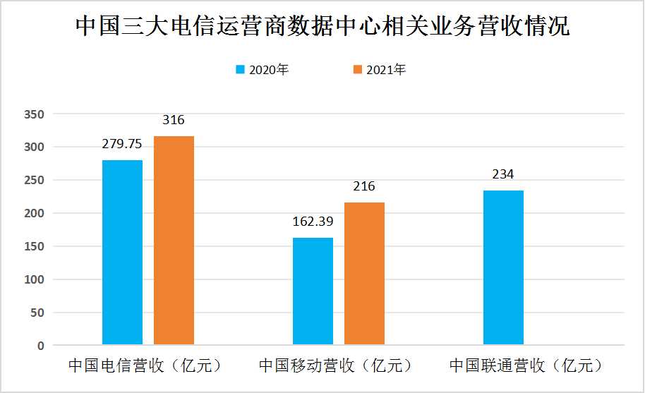 图表:中国三大电信运营商数据中心相关业务营收情况