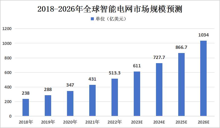 图表:2018-2026年全球智能电网市场规模预测