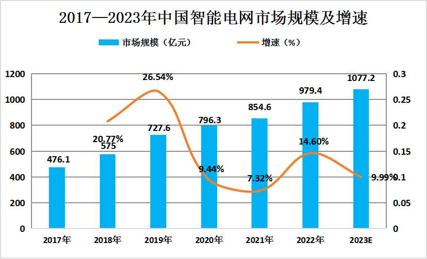 展望未来,随着新能源技术的不断进步和智能电网技术的持续创新,预计中国智能电网市场规模将进一步扩大。到2023年,预计市场规模将达到1077.2亿元,为中国的经济发展提供有力支撑。同时,智能电网的发展也将促进能源行业的转型升级,推动中国向更加科学、环保、可持续的发展模式迈进。