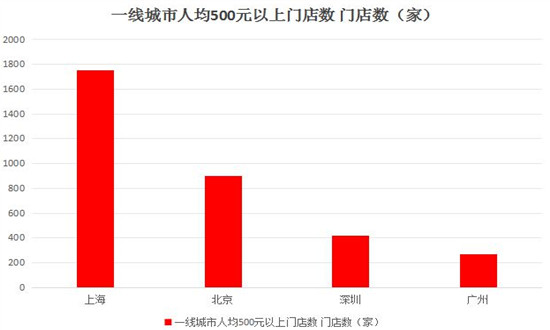 在例如上海,截至2023年5月10日,上海在营的餐饮门店总数大约为201570家,其中人均客单价在500元以上的餐饮店占比1.35%,而人均客单价高于千元以上的占比0.31%。彼时在上海,人均客单价在500元以上的高端餐饮店就有2700多家。